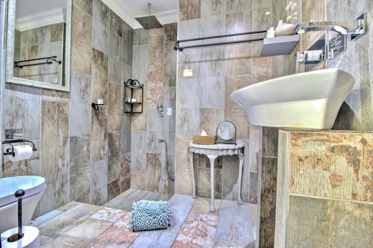 Bathroom configurations: • Rustic Wonder – shower only • French Flair – sunken shower • Tree of Life – open rain shower & sunken corner bath • Shalom Leez – open rain shower & corner bath • Time and Again – open rain shower & corner bath