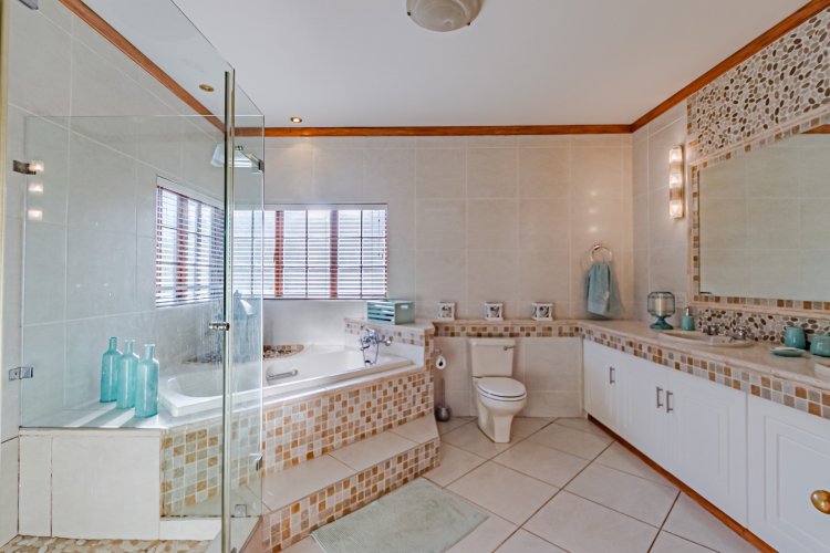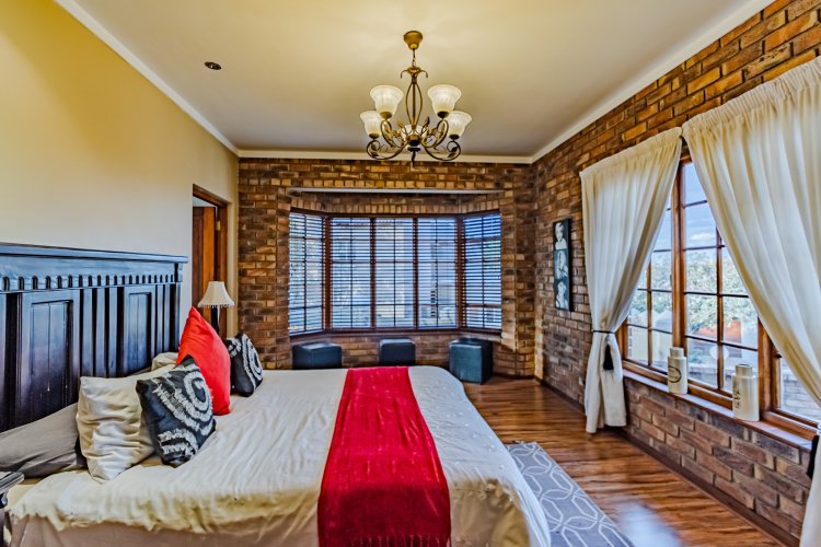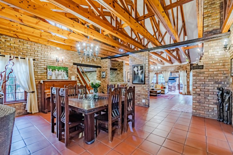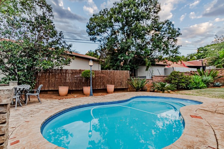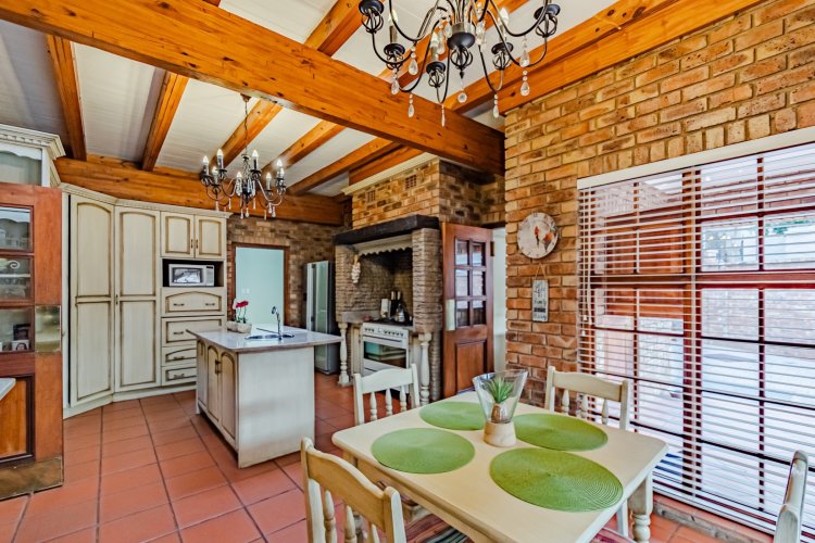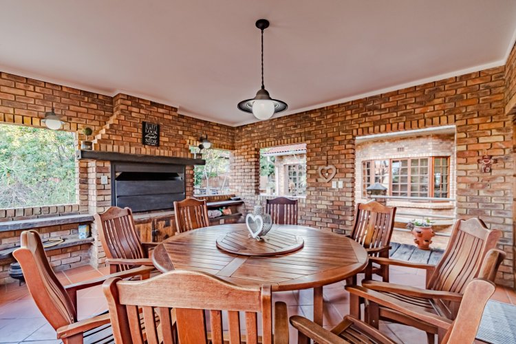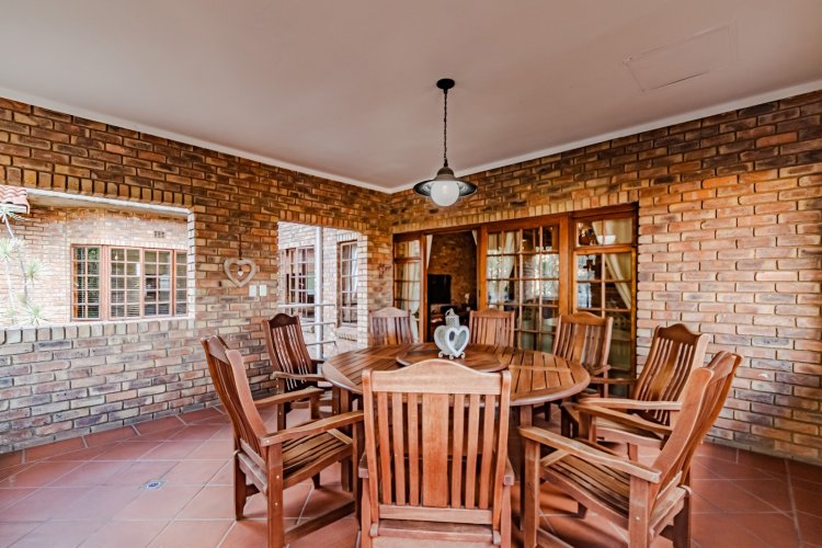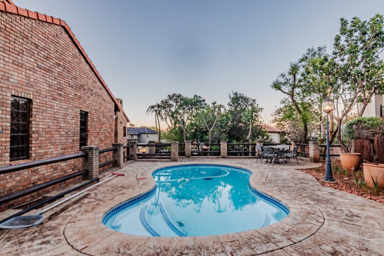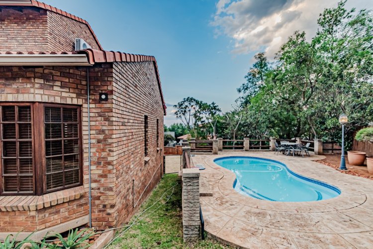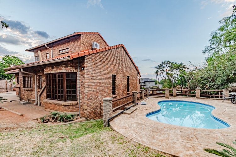 Spacious 5-Bedroom Family Home in Wapadrand – Tucked Away in a Quiet Cul-de-Sac This charming family residence offers space, warmth, and character throughout. Ideally positioned in a tranquil cul-de-sac within the popular suburb of Wapadrand, this home is perfect for a family who loves to entertain and enjoy relaxed, comfortable living. Property Features: • 5 Bedrooms, including a guest suite with an en suite bathroom. • Inviting reception area with a built-in bar and entertainment lounge, perfect for family gatherings. • Large open-plan living and dining area leading to a covered patio with a built-in braai, overlooking the pool and lush garden. • Cottage-style kitchen with solid wood finishes, ample cupboard space, and a separate scullery and laundry area. • Private study ideal for working from home. • Three bedrooms on the ground floor with a separate toilet and full family bathroom. • Upstairs main bedroom with a full en suite bathroom featuring a bath, double shower, and twin basins, as well as walk-in closets and an adjoining hobby room. • Downstairs entertainment room / wine cellar for cozy evenings. • Domestic accommodation with bathroom. • Double carports and extra parking space. Additional Highlights: • Solar system – 8 kW inverter, 5.1 kWh batteries, and 10 solar panels. • Borehole and irrigation system. • Alarm system and good security. • Beautiful established garden with plenty of space for children and pets. About the Area: Wapadrand is one of Pretoria East's most loved and established suburbs, known for its peaceful, tree-filled environment and strong sense of community. The area offers excellent security, often with access-controlled entrances, and is ideally situated close to top schools, medical facilities, shopping centres, and major routes such as the N4 and Lynnwood Road. Residents enjoy the combination of suburban tranquillity and convenient urban access, making it the perfect setting for families seeking space, safety, and a connection to nature.