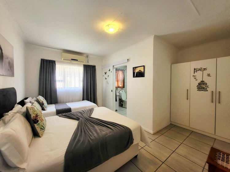 At the rear of the property, you'll find three self-catering one-bedroom units, each equipped with a kitchenette, lounge, and en-suite bathroom. Additionally, there’s a fourth unit with two bedrooms, perfectly designed for families, ensuring all your guests' needs are met as they unwind in this serene location.