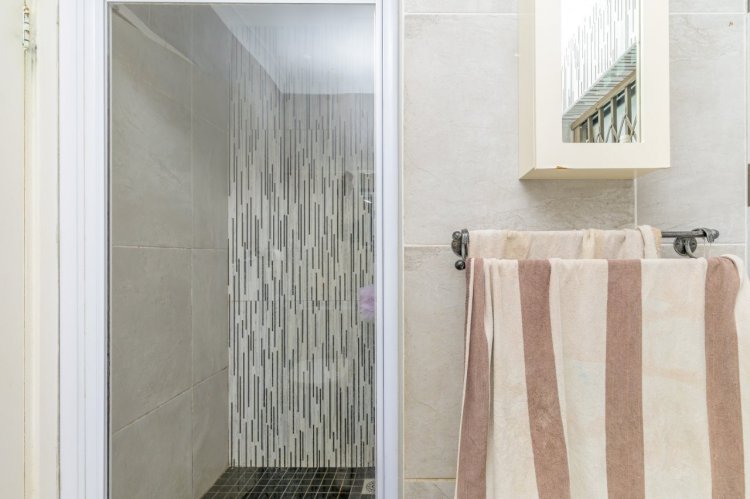 Downstairs, there are two bedrooms and a bathroom, with one bedroom currently converted into a guest suite—flexible enough to revert to a full bedroom if desired. Upstairs, you'll find a spacious master bedroom with a full ensuite bathroom, offering a private retreat.